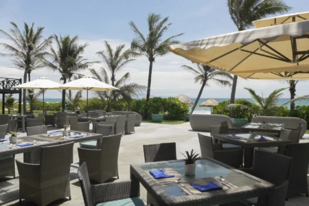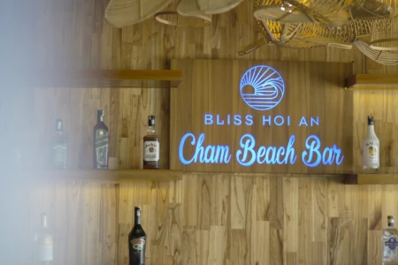 Located right on the serene private beach of Bliss Hoi An Beach Resort & Wellness, Cham Beach Bar is the perfect retreat for those seeking a relaxing space to fully immerse themselves in nature. With its direct oceanfront position, the bar offers expansive views and refreshing sea breezes. The soothing sound of waves gently lapping the shore creates a peaceful atmosphere. It feels worlds away from the hustle and bustle of everyday life.