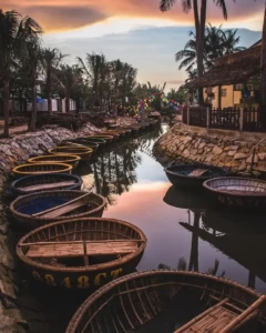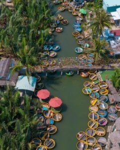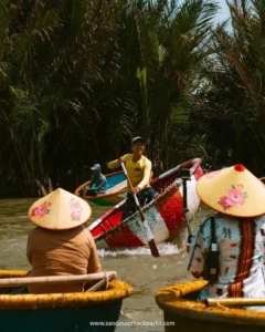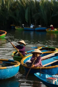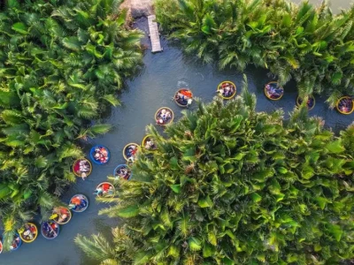 When visiting Hoi An, you shouldn’t miss the Bay Mau Coconut Forest, a unique and peaceful ecological attraction. To truly experience its charm, you’ll need to ride in a traditional Vietnamese bamboo basket boat.