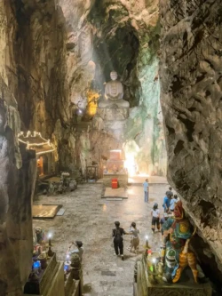 - • Visit Marble Mountains: discover natural caves, temples, and stone-carving village
